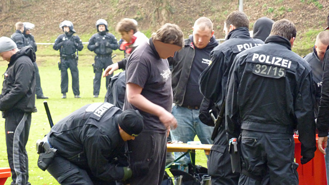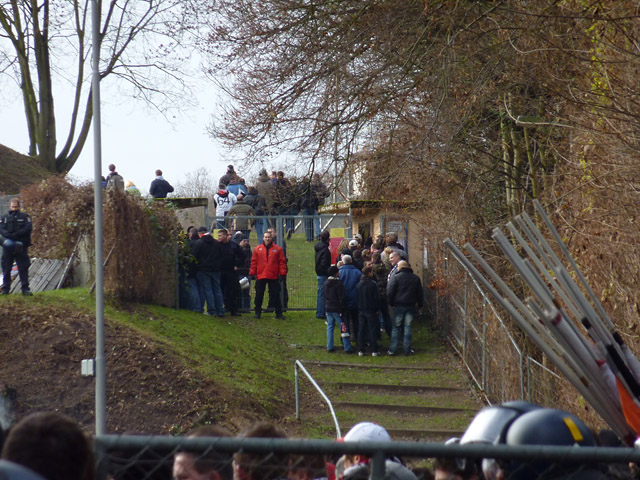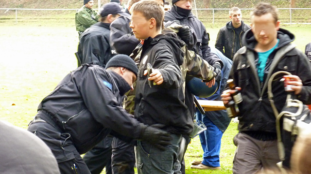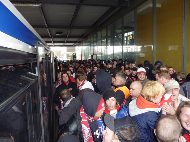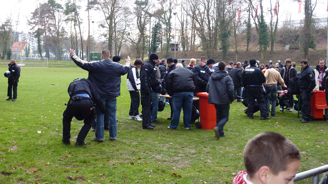 Das Stadion nun endlich in Reichweite, musste man sich erneut einer Leibes- und Taschenkontrolle unterziehen.