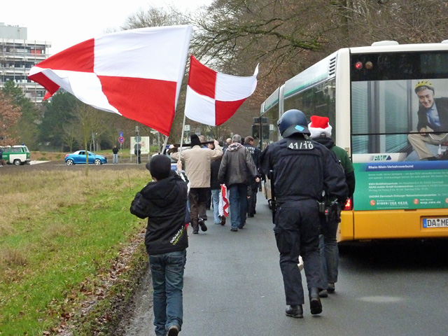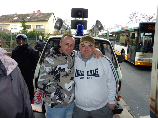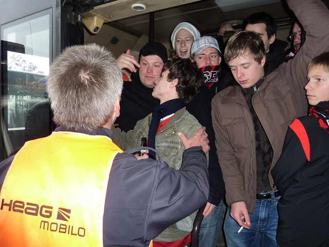 Mit den Bussen in der Nähe des Stadions angekommen, schwenkten die "jungen Pontiuse" während dem Fußmarsch zum Stadion stolz ihre rot-weißen Fahnen.