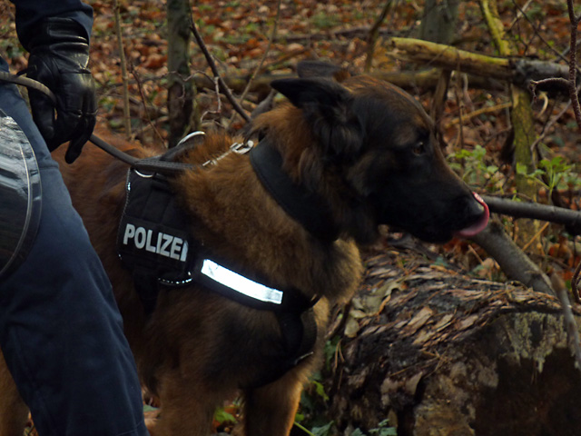 Der von der Fellfarbe her gut getarnte Hund einer Hundeführerin. Ziemlich wild und laut war das Kerlchen.
