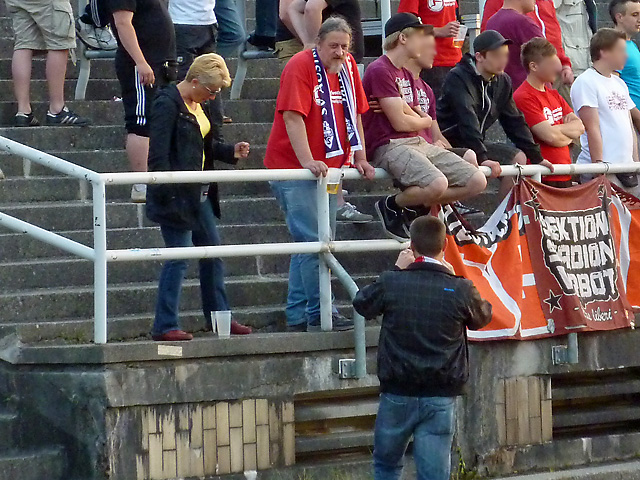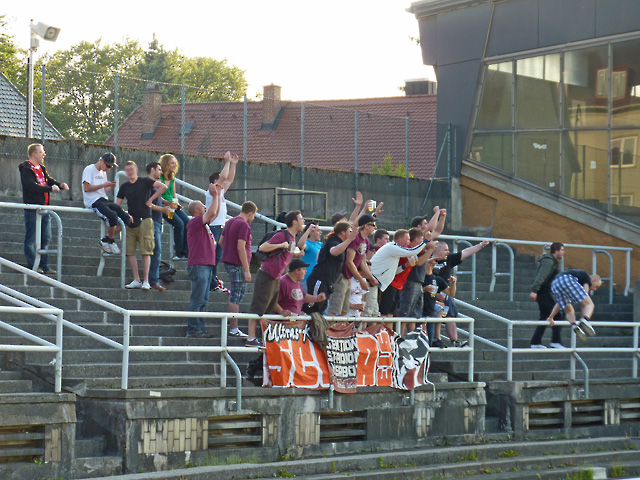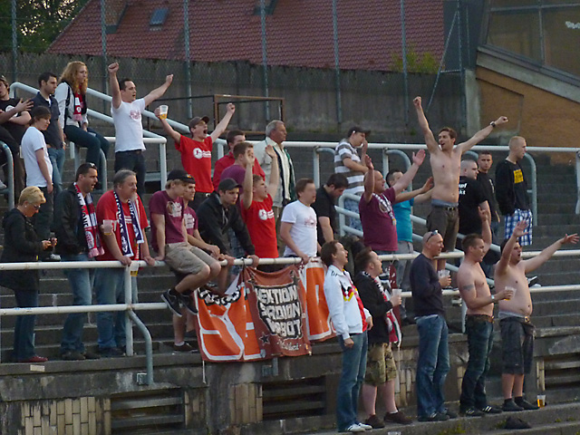 Während die Hardcore-Supporter zusammen standen, standen noch mal ca. 30 KSV-Fans im Block verteilt.