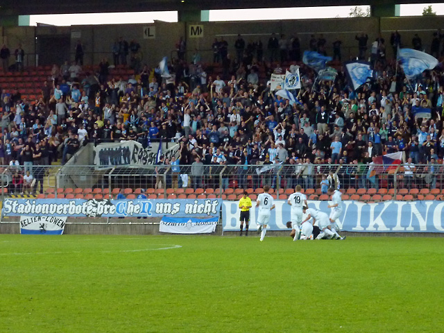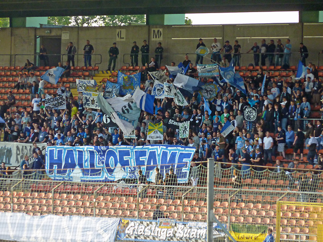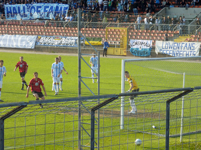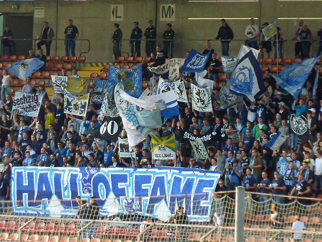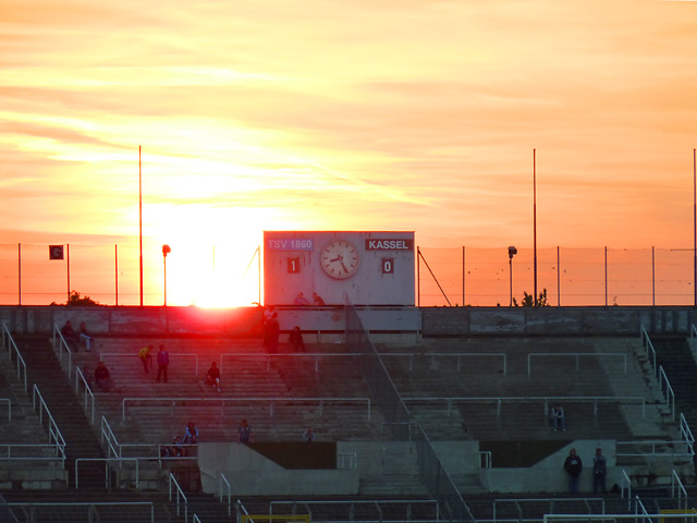 Gute Kullisse seitens der 60er. Nach Informationen eines Ordners gehen 2 Fanclubs der Sechziger ausschließlich nur ins Grünwalder Stadion, da sie die Allianz-Arena boykottieren. So besuchen sie regelmäßig die Spiele der Sechziger Amateure.