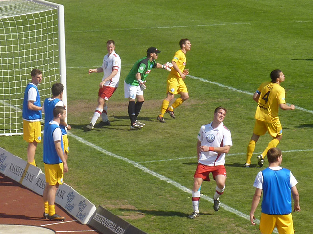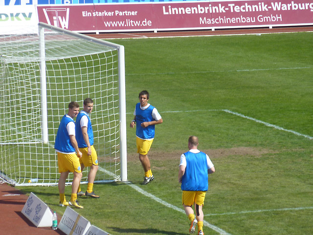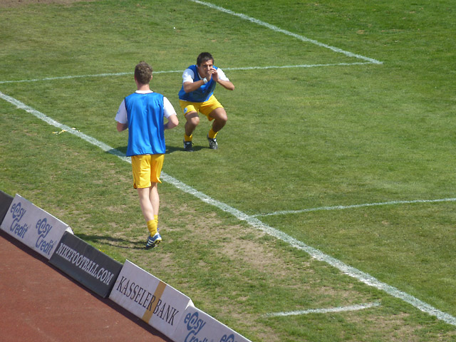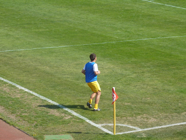 Marcel Rapp während dem Aufwärmen. Da er sich während dem Spiel ausschließlich auf dem Spielfeld warm machte, zog er einigen Unmut der KSV-Fans auf sich.