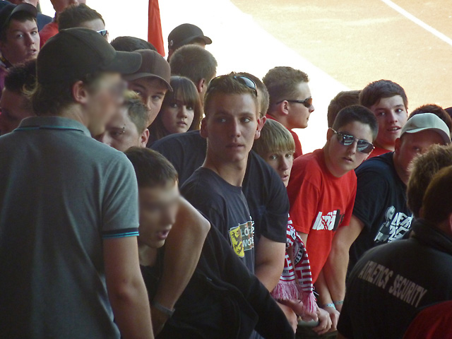 Wenn man im Fanblock Stress macht und junge Kerlchen prügelt, obwohl man nicht weiß wer wer ist und welche Kategorie auf der Nordtribüne vertreten ist, dann ist es kein Wunder, dass man von Papa in die Fresse kriegt.