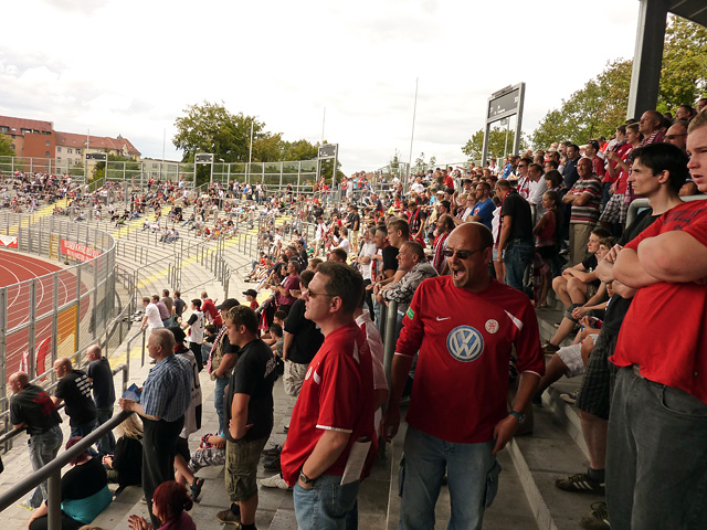 Eine mager besuchte Nordkurve, die trotz dem Boykott der Ultras doch hin und wieder einen lautstarken Support ablieferte, der aber teilweise mangels Synchronität abgewürgt wurde.