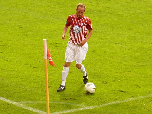 René Ochs auf dem Weg zu einem Eckstoss. Die Standards von René sind doch um einiges präziser, wie die von Bobo.