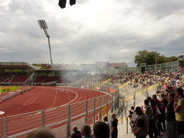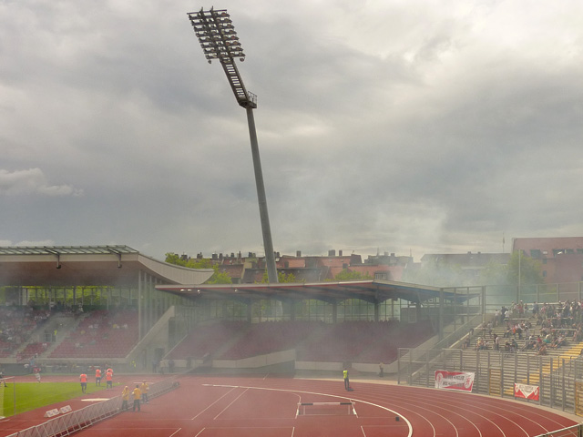 Die Rauchschwade verteilt sich fast im halben Stadion.