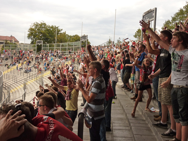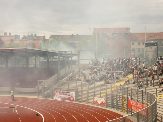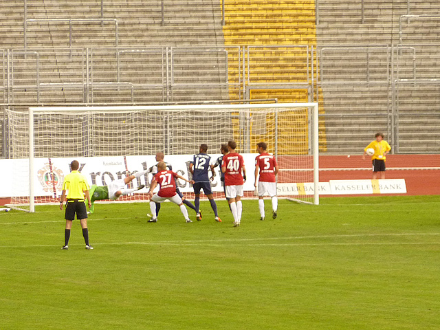 Ein paar Minuten später wird die Freude der Kasseler Fans getrübt.