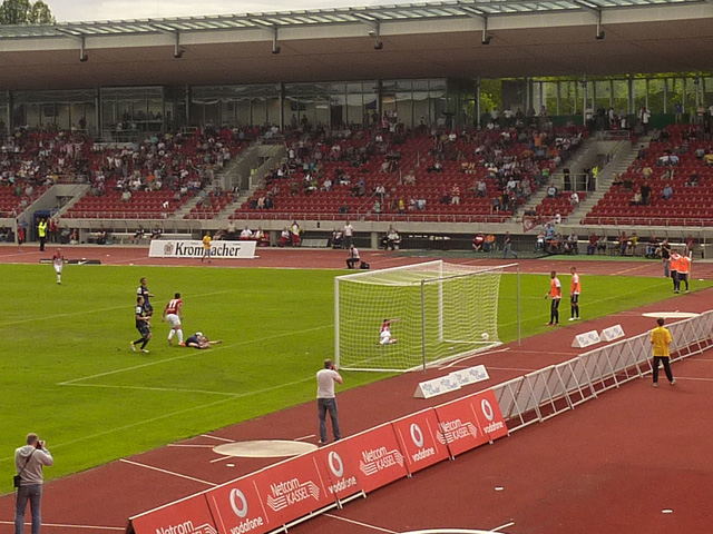 Jawoll !!! Ein langer Ball wird vom Freiburger Torwart falsch eingeschätzt. Hajdarovic ergattert sich den Ball, spielt den Ball auf Caner Metin, der den Ball mit der Fussspitze noch hinter die Linie bringt.