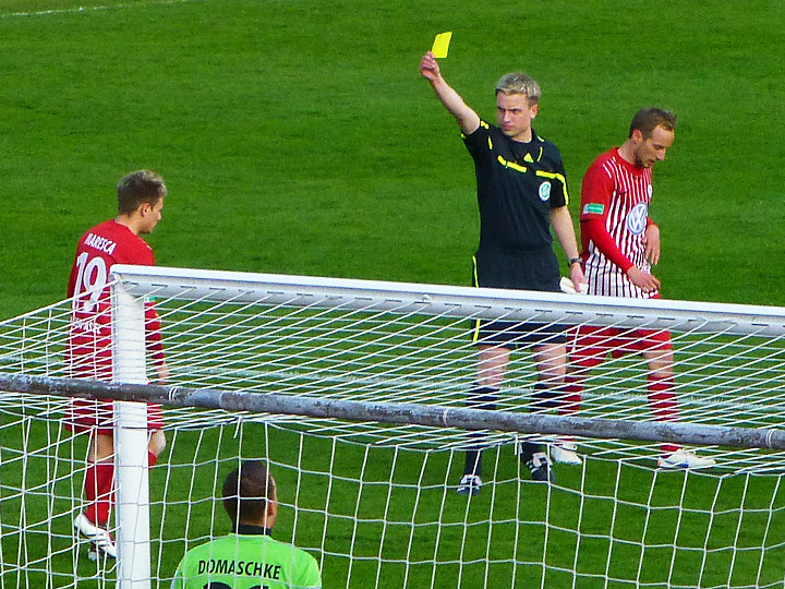 ......knallt an den Pfosten. Domaschke konnte nur noch hinterher schauen......