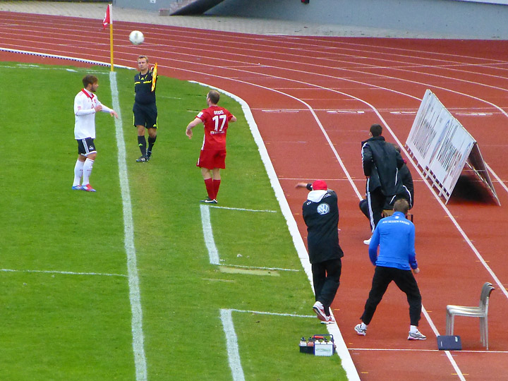 Der Ball landete im Seitenaus, Gerdes schnappte sich - mit der festen Überzeugung, dass der Nürnberger Spieler zuletzt den Ball berührte - sofort den Ball und warf blitzschnell ein, während der Nürnberger noch den Ball forderte und auch der Linienrichter zugunsten Nürnbergs entschied. Der Nürnberger Trainer fand Gerdes' Verhalten nicht dolle und unsere Trainer brachte die Entscheidung des Linienrichters aus der Fassung.