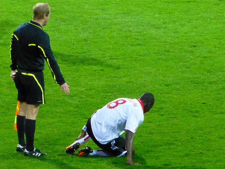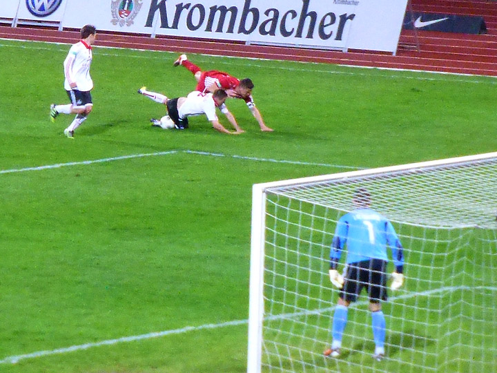 "Öy, was willst Du denn von mir, isch hab misch nur verteidigt! Dieser Kerle hier will mir doch als meinen Ball wegnehmen."