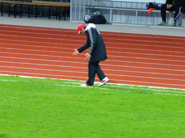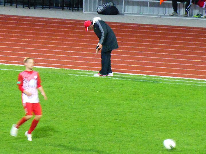 Uwe Wolf ist ganz offensichtlich verzweifelt über die Spielweise unserer Löwen, bzw. über seine nicht umgesetzten Anweisungen und lässt seinem Frust freien Lauf indem er vor sich her mährt.