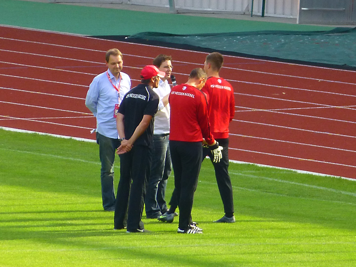Während die Kameruner Löwen nach wie vor in Reih und Glied stehen, wärmen sich die Hessenlöwen schon auf.