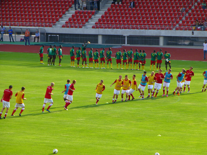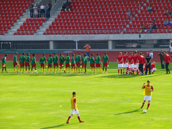 Die Mannschaftsvorstellung der Kameruner schreitet weiter voran und unsere Jungs schreiten in schnellen Schritten den halben Platz auf und ab