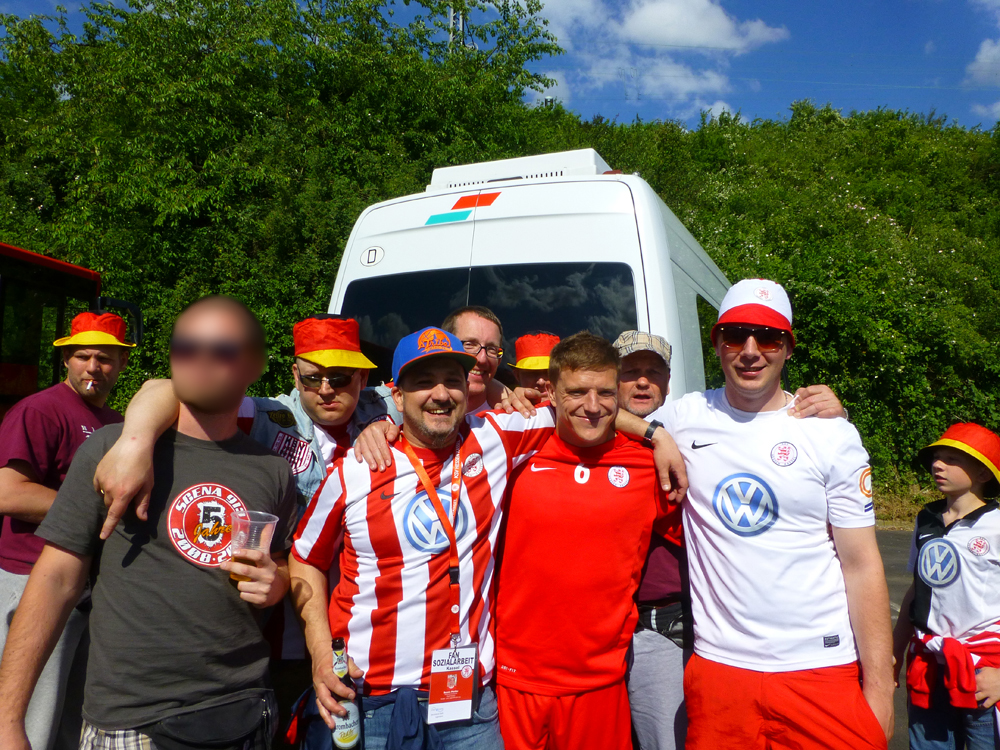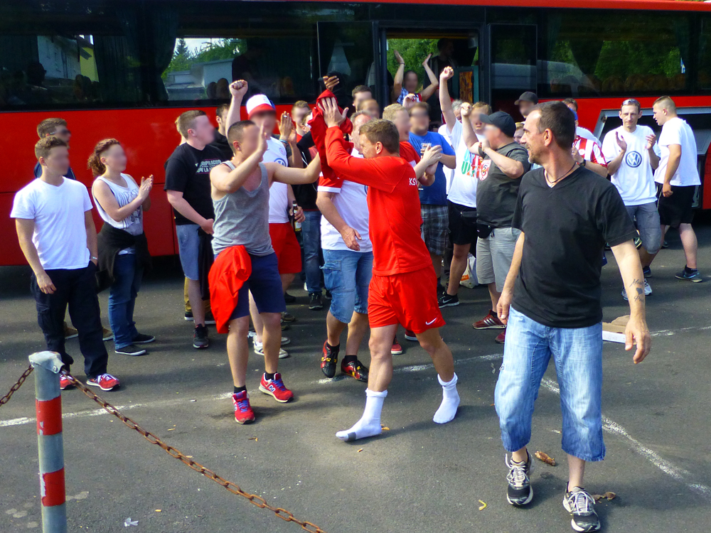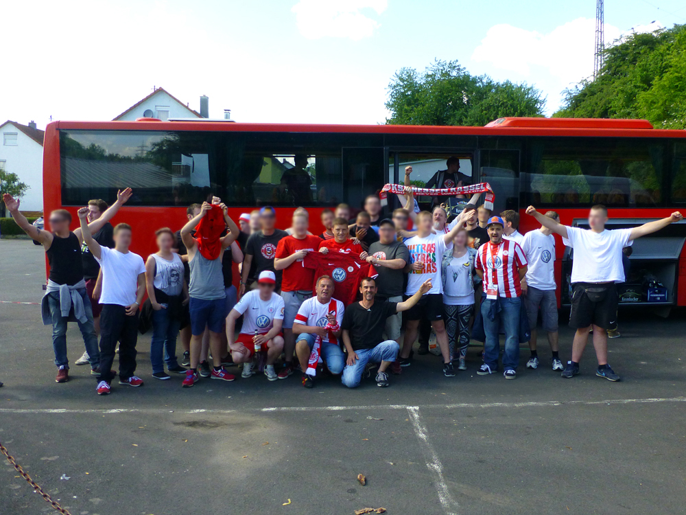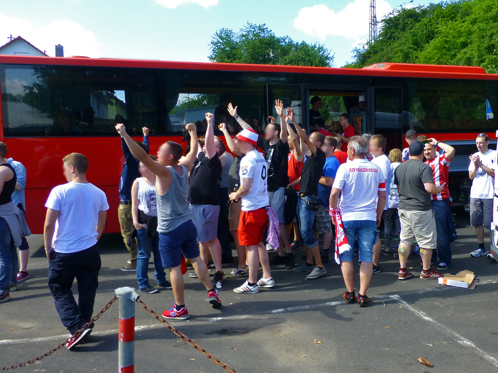 aber scheinbar hatte die Polizei etwas dagegen. Also alle zum Fanbus.