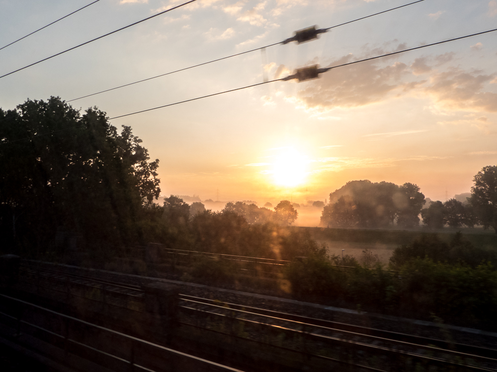 7:00 Uhr. Man ist nun schon 'ne 3/4 Stunde unterwegs. Die Sonne ist schon fleißig dabei den Nebel über den Tälern zu vertreiben.