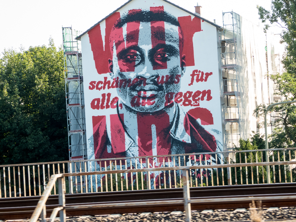 20 nach 9. Gerade den Frankfurter Hbf. verlassen und da sticht einem diese Häuserwand ins Auge: