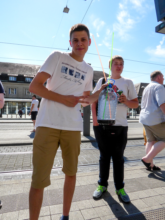 Wieder zurück am Karlsruher Hbf. Die Jungs haben ihre 5 Liter Sangria schon fast leer gesoffen. Mir wurde allein nur vom zuschauen schon fast schlecht.
