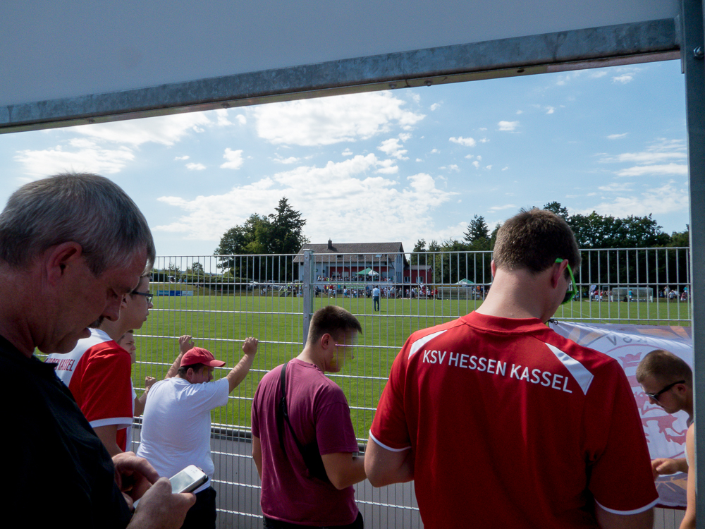 Die Polizei begleitete das kleine Grüppchen, bestehend aus Kasseler und Spielberger Fans, mit einem 9-Sitzer. Mein scherzafter Vorschlag, dass sie doch hinter uns her laufen könnten und damit der Umwelt etwas Gutes tun würden wurde mit Schweigen und Fenster hochkurbeln quitiert. Hihihi