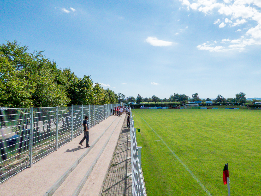 Jeden Moment erfolgt der Anpfiff. Bilder vom Spiel gibt es hier nicht zu sehen. Durch diesen engmaschigen Zaun war das unmöglich und auf den Zaun steigen hat die Security auf den Plan gerufen, die heimischen Ordner hingegen waren absolut chillig drauf. Nette Kerlchen. Ich hatte allerdings vorher gefragt, ob ich zwecks Fotos mal kurz auf den Zaun dürfte, was genehmigt wurde.