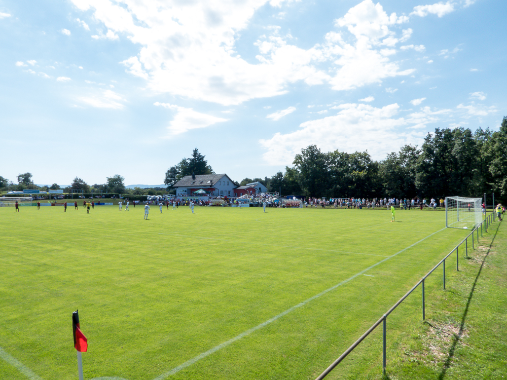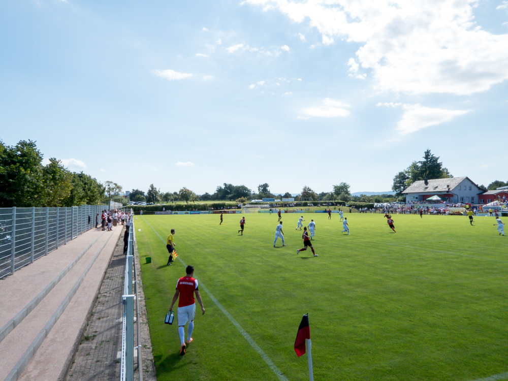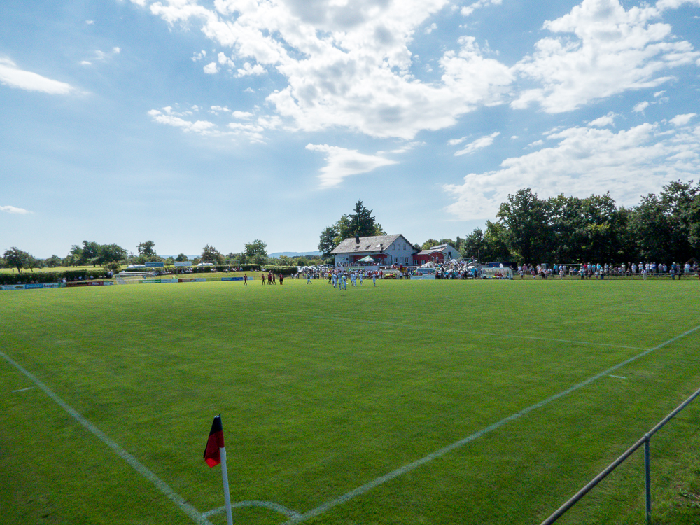 Endlich im Stadion. Erster Eindruck: Netter Sportplatz.