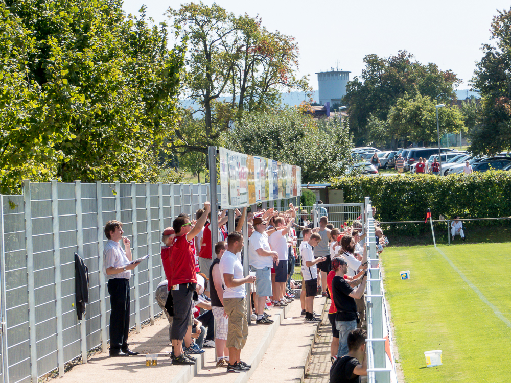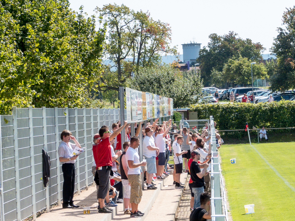 Die Mannschaften sind eingelaufen, die Heimfans machen's sich bequem