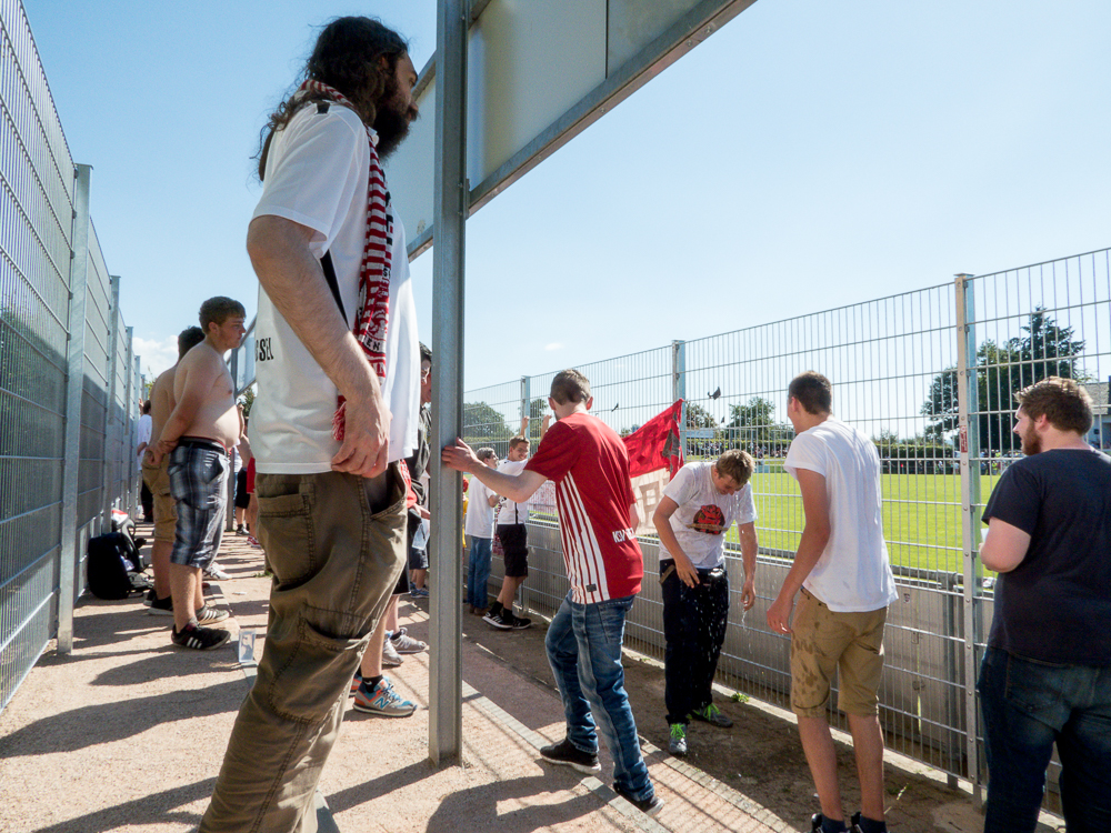 Aus dem Heimbereich ausgesperrt und im Gästeblock eingesperrt. Uncoole Aktion.