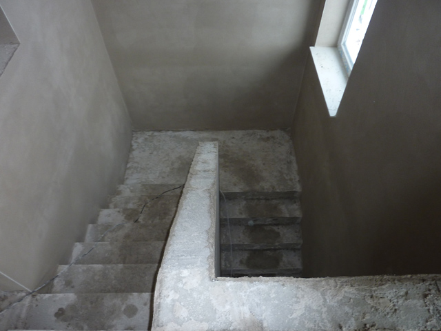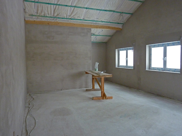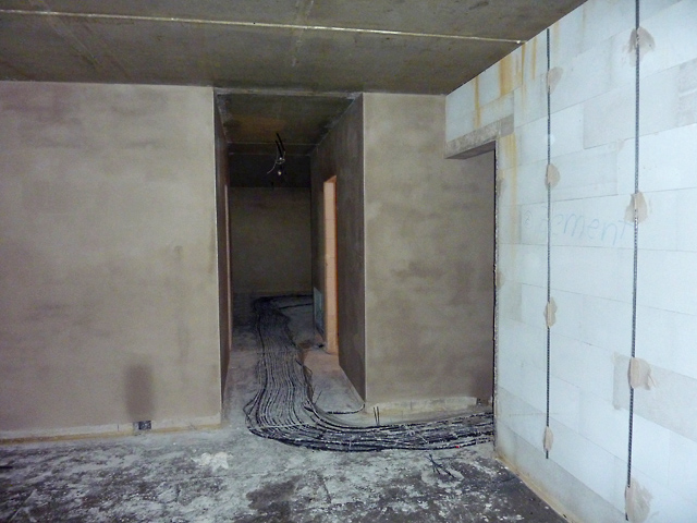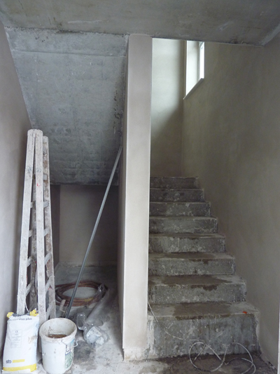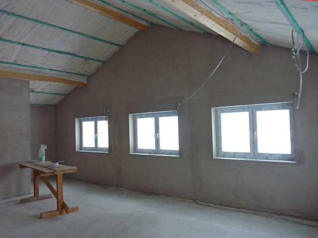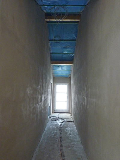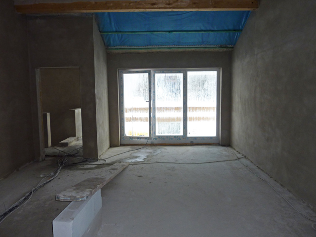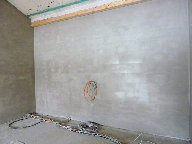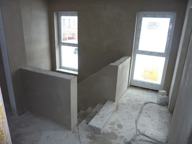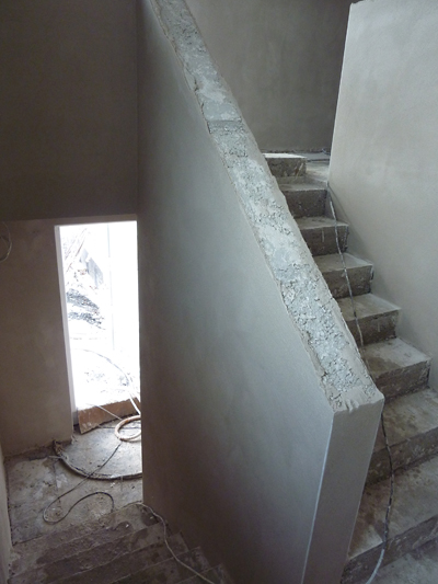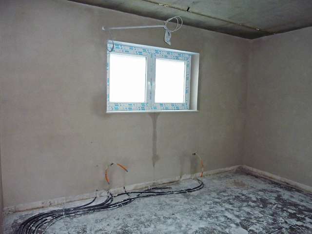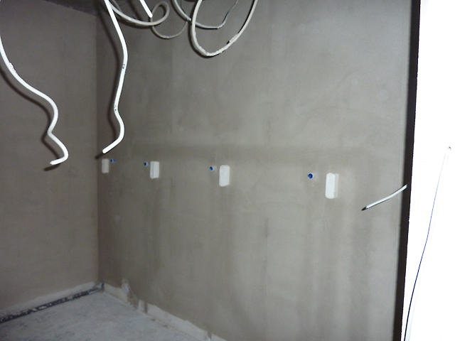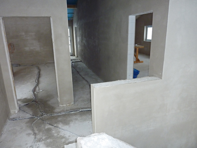 Verputzung der Innenräume, Elektrik- und Sanitärinstallationen