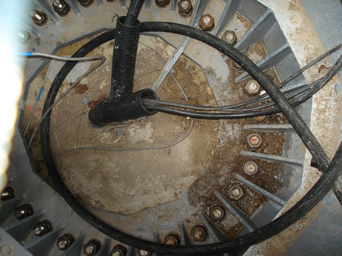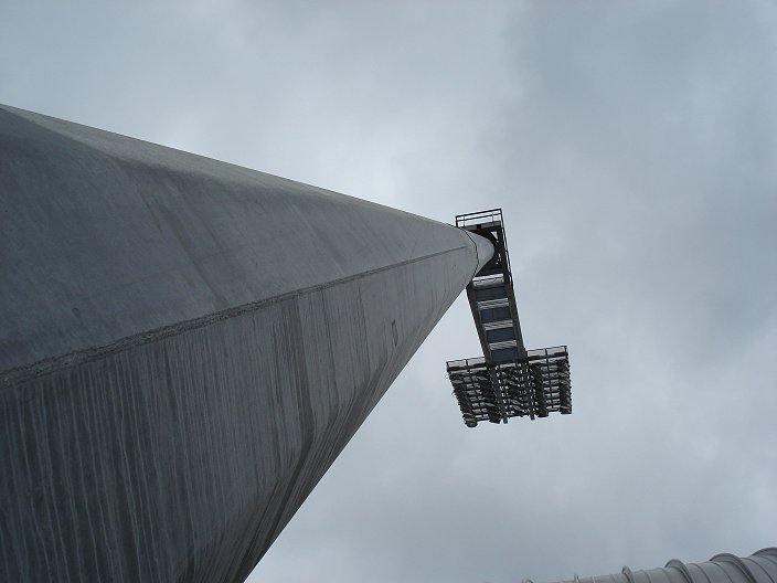 Sockel eines Flutlichmastes. Schon beeindruckend, dass die