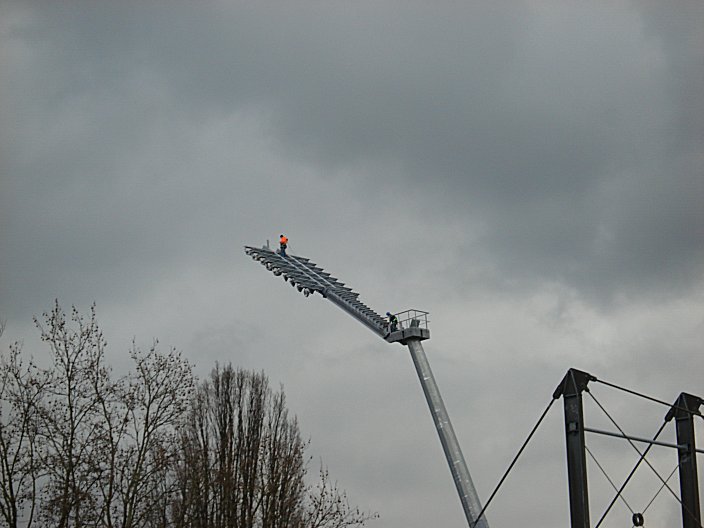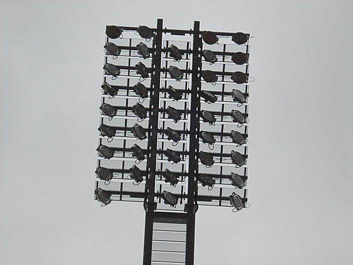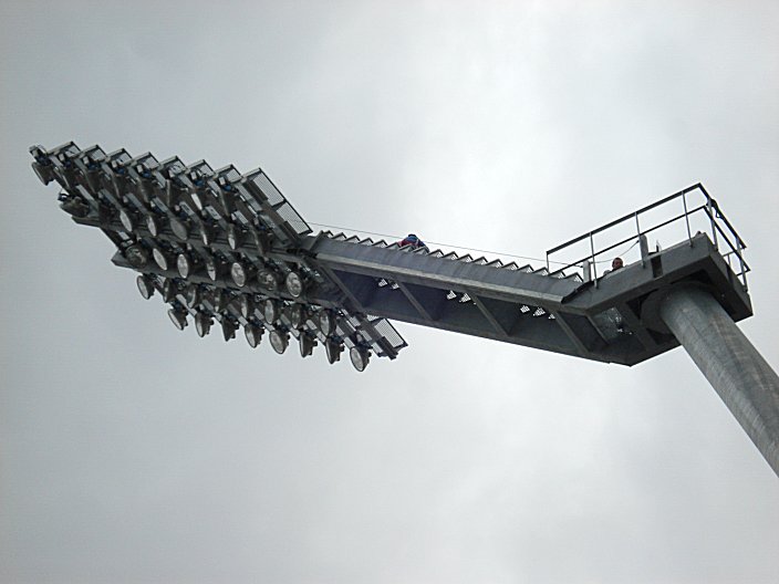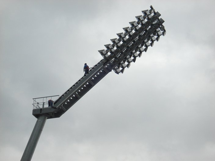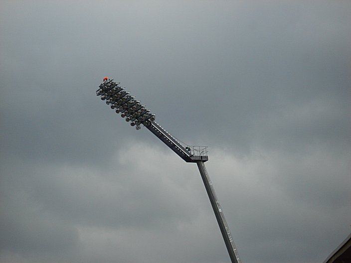 Alle Flutlichtmasten aufgebaut. Nun geht die Verkabelung erst