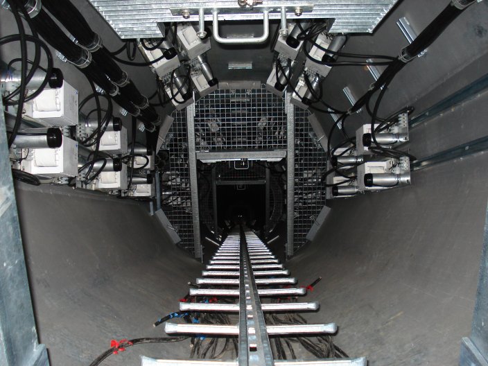 Vorschaltgeräte (für die Strahler) im inneren des Mastes