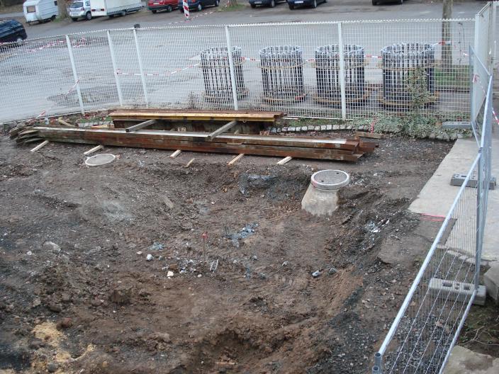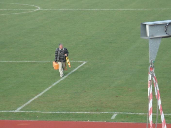 (Im Hintergrund - hinter'm Zaun die Verankerungen für die Flutlicht-Masten)