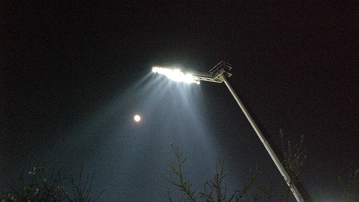 Flutlichtschein im Mondlicht