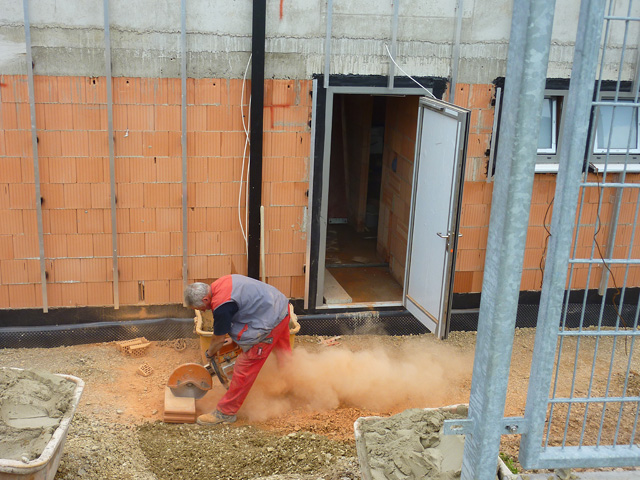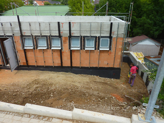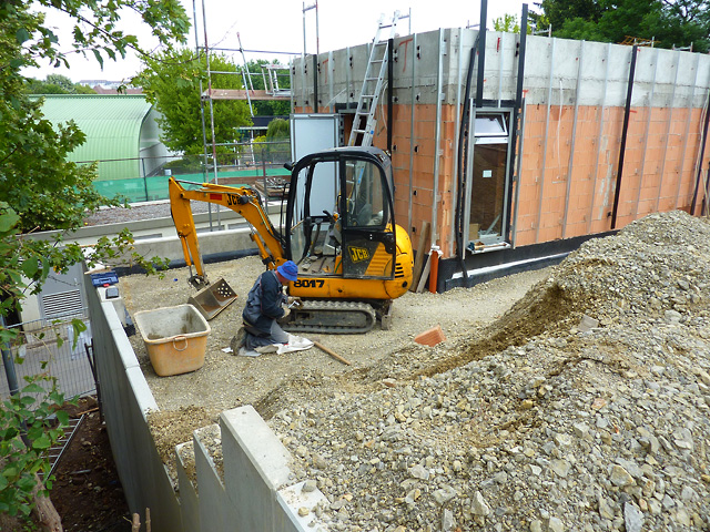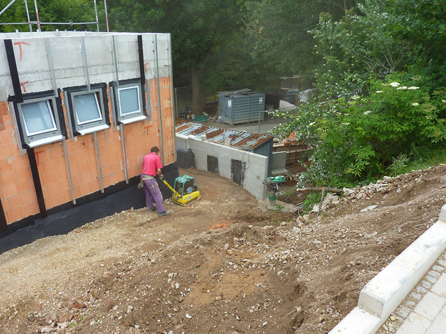 Mittlerweile wurde zum größten Teil der Bereich mit Erde aufgefüllt und derzeit verdichtet.