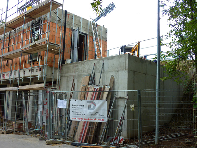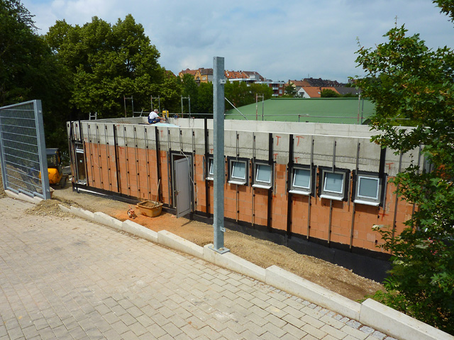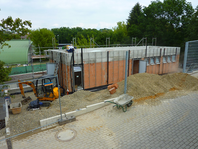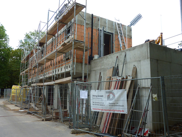 Mit dem Toilettenhäuschen der Nordkurve geht es gut voran.
