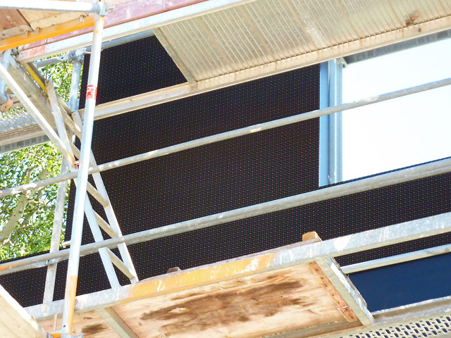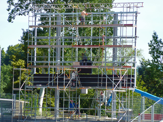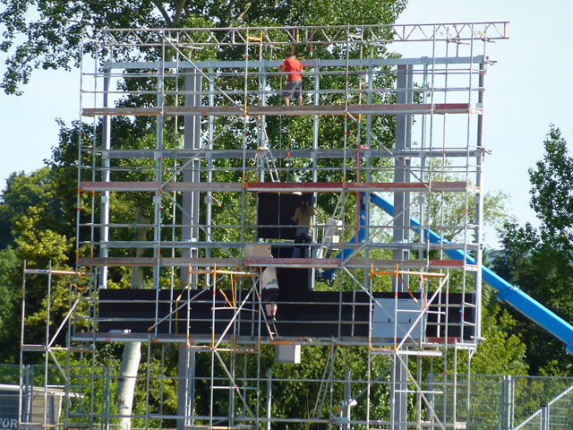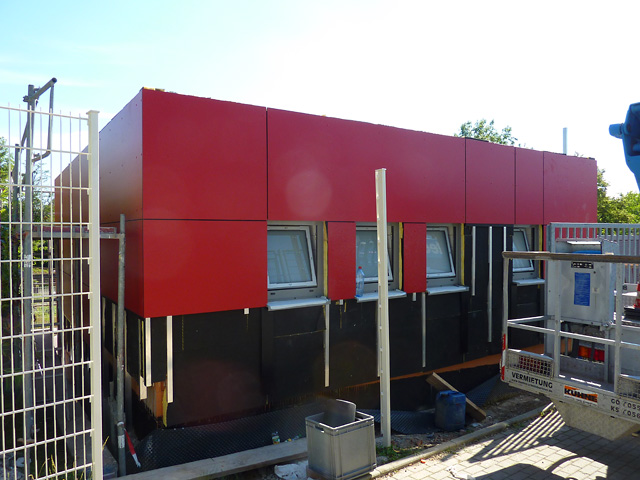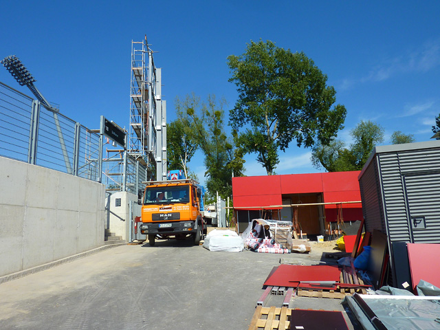 Im Laufe der zwei letzten Wochen wurde auch das Toilettenhäuschen der Südkurve verkleidet. Im Innern wird derzeit gefliest.